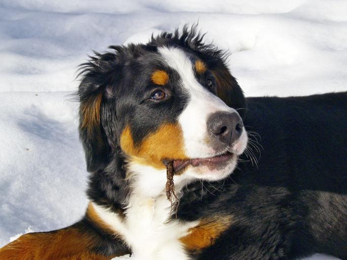 Keywords: bernese mountain dog canine animal dog pet berner sennenhund friend winter snow