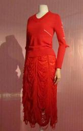 | Keywords: Bernhard Wilhelm - jersey sweater.jpg Knitwear exhibition ONTRAFEL Tricot in de Mode at the Fashion Museum ModeMuseum MOMU in Antwerp Belgium The central design is a dress by Walter Van Beirendonck inspired by the colourful clothing of the Hui'an women of Quanzhou China The flanking designs are by the German-born fashion designer Bernhard Wilhelm On the left a jersey sweater with elbows like the heels of a sock and a skirt with alternating strips of knitted wool and loose threads On the right the Beefeater wool jacket and Superflyskirt jersey dress own 2011-04-30 Jvhertum Modemuseum Antwerpen jpg MoMu - Fashion Museum Province of Antwerp Knitwear Bernhard Wilhelm |