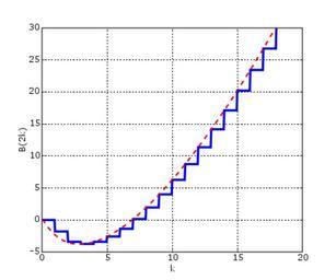 | Keywords: Bernoulli numbers logarithmic growth.png Logarithmic growth rate of the Bernoulli numbers of even index Solid blue graph shows <math>\log B_ \lfloor2k\rfloor </math> dotted red graph shows the asymptotic estimate <math>\log \left 4 \sqrt \pi k \left \frac k \pi e \right 2k \right </math> Croissance des logarithmes des nombres de Bernoulli d'indice pair Le graphe bleu trait continu montre <math>\log B_ \lfloor2k\rfloor </math> le graphe rouge en pointillés montre l'équivalent asymptotique <math>\log \left 4 \sqrt \pi k \left \frac k \pi e \right 2k \right </math> 2006-05-17 own assumed Fredrik Bernoulli numbers |