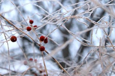 Keywords: berries winter cold hoarfrost frozen red twigs nature wild berry december crystal background freeze accent