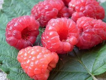 Keywords: berry raspberry fruit red sweet fresh a lot leaves closeup in the summer time summer garden food dessert