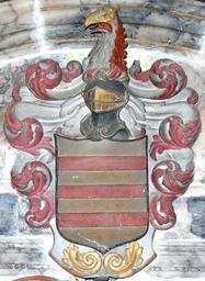 | Keywords: BerryArmsMollandChurchDevon.JPG en Heraldic achievement of Rev Daniel Berry 1609-1654 vicar of Molland cum Knowstone on mural monument in Molland Church Devon erected in 1684 by his son Admiral Sir John Berry 1635-1689 Arms Or three bars gules which arms are depicted on the mural monument in Berrynarbor Church of Richard Berrie Esq 1582-1645 lord of the manor of Berrynarbor Crest A mythical bird's head and neck couped per pale argent and gules beaked or own photo Lobsterthermidor <span class signature-talk >talk</span> 18 38 4 May 2013 UTC 1684 photo 2013 St Mary's church Molland monuments Berry arms Heraldic memorials in the United Kingdom |