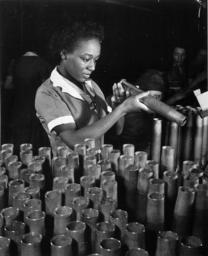 | Keywords: Bertha Stallworth - NARA - 535805.tif Local identifier 208-NP-1WW-1 Office for Emergency Management Office of War Information Domestic Operations Branch News Bureau 06/13/1942 - 09/15/1945 Still Picture Records Section Special Media Archives Services Division NWCS-S National Archives at College Park 8601 Adelphi Road College Park MD 20740-6001 other date circa 1941 1945 Record group Record Group 208 Records of the Office of War Information 1926 - 1951 Record group ARC 535 Negro Activities in Industry Government and the Armed Forces compiled 1941 - 1945 Series ARC 535799 Variant control numbers NAIL Control Number NWDNS-208-NP-1WW-1<br /> Select List Identifier AFRO/AM LIST 253 General notes Scope and content File unit File unit ARC yes <gallery> File Bertha_Stallworth _age_21 _shown_inspecting_end_of_40mm_artillery_cartridge_case_at_Frankford_Arsenal _ca _1941_-_ca _-_NARA_-_535805 tif tif original File Bertha_Stallworth _age_21 _shown_inspecting_end_of_40mm_artillery_cartridge_case_at_Frankford_Arsenal _ca _1941_-_ca _-_NARA_-_535805 jpg jpg </gallery> NARA-cooperation PD-USGov War workers in the United States Women at work in the United States Temporary for Cat-a-lot - Female humans Female shirts Black and white photographs of female at work World War II home front in the United States NARA TIF images with categorized JPGs Frankford Arsenal |