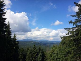 Keywords: beskydy panorama lysa hora clouds heaven forest landscape evergreen natural environment evergreen pine