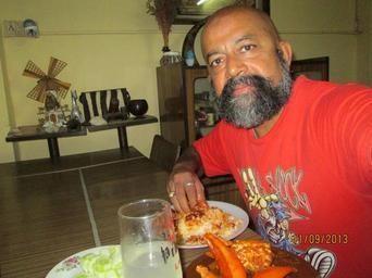 | Keywords: Best 'Crab Curry & Rice' East of Suez in Mumbai.Goan style.Cooked by Miss Sabina.Dias.JPG en Miss Sabina Dias my house-keeper has a additional talent as a Non-Vegetarian cook Here is a display of her culinary skills which i am relishing with a glass of Bacardi I have to date toured 26 of the Globe and hence have tasted common street cuisine as well as 5-Star cuisine in various Country's and City's of the World Hence take my comments seriously - Seafarer/Blogger/Traveller Rudolph A Furtado own Rudolph A furtado Wednesday 11-9-2013 Fish food Cc-zero |