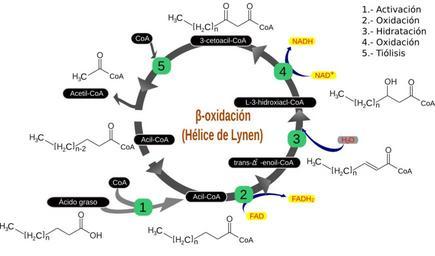 Keywords: Beta-oxidacion.svg es Esquema de la beta oxidación de los ácidos grasos Traducción al español de Alejandro Porto 2013-03-08 19 37 05 File Beta oksydacja svg Pisum traducido al español por Alejandro Porto cc-zero Uncategorized 2013 March 8