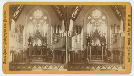 | Keywords: stereographs philadelphia churches organ galleries organgalleries beth eden baptist church bethedenbaptistchurch altars james cremer jamescremer Shows the interior of Beth Eden Baptist Church in Philadelphia. View includes an arched ceiling, stained glass windows, carved decorative trim and organ pipes.Two chairs and a pulpit on a platform are also visible. Accession number: P.2011.47.725 Shows the interior of Beth Eden Baptist Church in Philadelphia. View includes an arched ceiling, stained glass windows, carved decorative trim and organ pipes.Two chairs and a pulpit on a platform are also visible. Accession number: P.2011.47.725 |