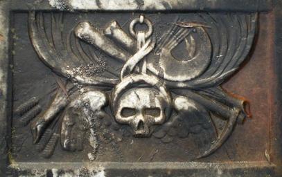 | Keywords: Beth Haim Detail1.JPG de Detailaufnahme eines Grabsteines auf dem portugiesisch-israelischen Friedhof Beth Haim in Ouderkerk aan de Amstel nl Detail van een grafsteen op de Portugees-Israƫlitische begraafplaats in Ouderkerk aan de Amstel en Detail of a headstone at the Jewish cemetery Beth Haim in Ouderkerk aan de Amstel own Janericloebe 2008-11 Beth Haim Grave reliefs of skulls Sickles on Jewish gravestones | ||||