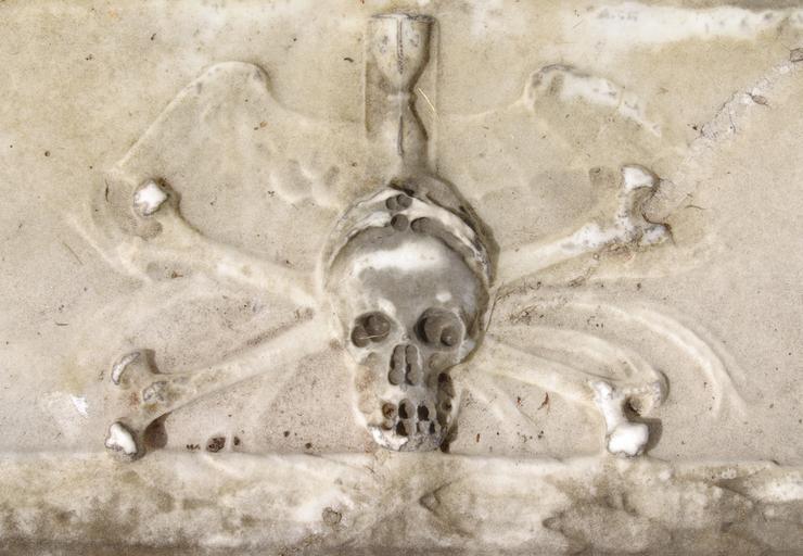 | Keywords: Beth Haim Detail 002.JPG  en Detail of a headstone at the Jewish cemetery Beth Haim in Ouderkerk aan de Amstel Beth Haim in Ouderkerk aan de Amstel nl Detail van een grafsteen op de Portugees-Israƫlitische begraafplaats in Ouderkerk aan de Amstel own Janericloebe 2010-06 Beth Haim Reliefs of skull and crossbones Hourglass on Jewish gravestones Grave reliefs of skulls |