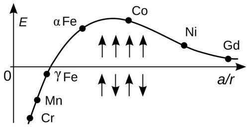 Keywords: Bethe-Slater curve by Zureks.svg en Bethe-Slater curve E - exchange energy a - interatomic distance r - radius of 3d electron shell own Zureks 2009 Magnetism plots cc-zero