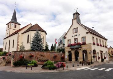 Keywords: betschdorf alsace france protestant church town hall administration buildings historic