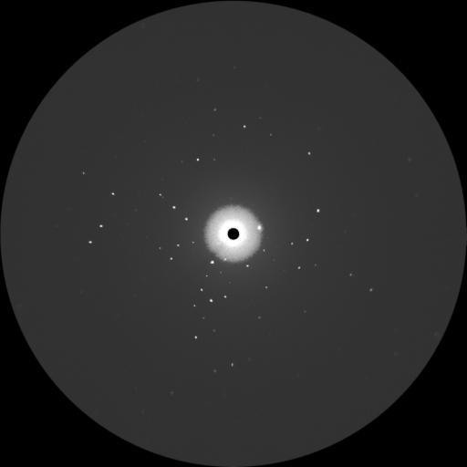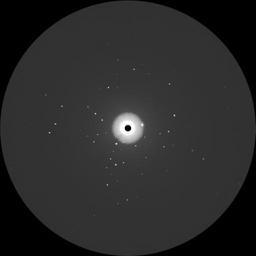 | Keywords: Beugungsbild eines Kristalls.png Deutsch Beugungsbild eines Kristalls aufgenommen mit monochromatischer Röntgenstrahlung Mo-K_alpha Detektor Bildplatte IPDS English Scattering image of a crystal monochromatic x-ray irradiation Mo-K_alpha detector imaging plate IPDS Own 2008-03-26 Ain2000 X-ray diffraction |