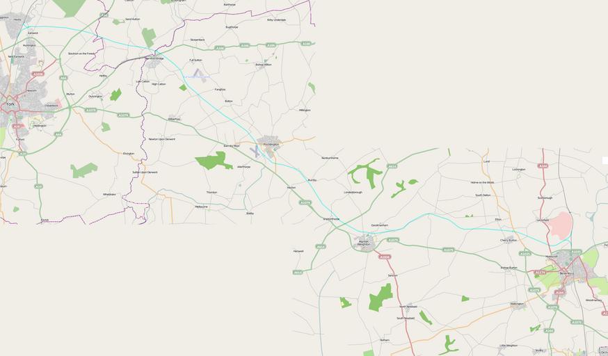 | Keywords: Bev-yrk-rail-wiki-merged.png York to Beverley Line England The route follows the original trackbed where possible and East Riding of Yorkshire Council's proposed routes and station locations around Stamford Bridge Pocklington and Market Weighton The northbound link at the Beverley end the East-Coast-Mainline links at the York end and the Cherry Burton station are all speculation by the author Created By Self / OpenStreetMap org Ric Hardacre Map taken from openstreetmap org 2010-01-28 Creative Commons Maps of the East Riding of Yorkshire Maps of North Yorkshire York to Beverley Line |