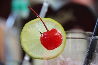 Keywords: beverages cherry lemon slices decorated drinks refreshing decorative glass cup straw fruits