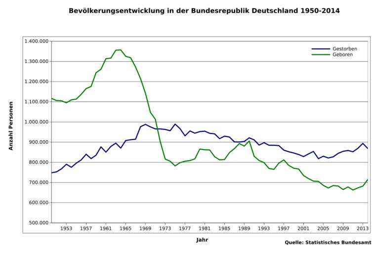 | Keywords: Bevölkerungentwicklung Deutschland 1950-2014.svg en Births and deaths in Germany between 1950 and 2014 de Geburten und Sterbefälle von 1950 bis 2014 in der Bundesrepublik Deutschland Statistisches Bundesamt DaB 2016-04-03 Birth and death rates Cc-zero |