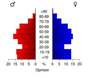 | Keywords: Bevolkingspiramide 2008 - CBS gemeentecode 0432.svg Age pyramids for the municipalities in the Netherlands 1/1/2008 Created in svg with own script Statistics provided by Centraal Bureau voor de Statistiek Voorburg/Heerlen Source Tabel Bevolking; burgerlijke staat geslacht leeftijd en regio 1 januari Tabeltoelichting Gewijzigd op 14 mei 2008 Verschijningsfrequentie per jaar http //statline cbs nl/StatWeb/publication/default aspx DM SLNL PA 03759NED D1 1-2 2c15 D2 118-128 D3 1-4 2c8-9 2c13-19 2c21 2c24 2c26 2c28-30 2c33-36 2c38-40 2c43-44 2c48-49 2c52 2c54 2c56 2c59 2c62 2c64 2c67-71 2c78 2c80-84 2c86-89 2c91 2c93-98 2c101 2c103-107 2c109 2c111-112 2c115 2c118-119 2c121-124 2c126-127 2c130 2c132-134 2c136 2c138-141 2c143-144 2c146 2c151 2c154 2c156-157 2c159-160 2c162-163 2c166-167 2c169 2c171 2c177-179 2c181-182 2c184 2c187-189 2c191-195 2c198 2c201 2c204-205 2c207 2c209 2c211 2c214 2c218-219 2c221-224 2c226 2c228-230 2c233 2c236 2c241-243 2c246-251 2c253 2c257-262 2c265 2c271-274 2c276 2c278 2c282 2c284 2c286-290 2c292 2c294 2c296 2c298-299 2c301-303 2c306 2c312-314 2c317-318 2c321-322 2c327 2c329 2c332 2c334-335 2c337 2c339 2c344-346 2c349-353 2c355-358 2c361 2c363-366 2c368 2c370-373 2c380 2c382-383 2c386-391 2c393-395 2c399 2c403-406 2c408-409 2c412 2c416-417 2c419 2c421-422 2c424 2c426-430 2c432-433 2c439-441 2c447-448 2c450-452 2c455-456 2c458-459 2c462-463 2c465 2c468-469 2c471 2c476 2c478-479 2c481-482 2c484-486 2c489 2c491-492 2c496 2c498-500 2c503 2c505-507 2c512-516 2c519-521 2c523-524 2c528-532 2c534 2c536 2c540 2c542-543 2c546-550 2c552-555 2c560-561 2c564-565 2c567-568 2c572-573 2c577-580 2c586 2c588-594 2c597 2c599-603 2c605 2c609-610 2c612-614 2c617 2c619 2c621-624 2c628 2c630-631 2c633 2c636-637 2c640 2c646-647 2c649-651 2c653 2c655-661 2c663-664 2c666 2c668-670 2c673 2c675-681 2c683-684 2c686 2c689-690 2c693 2c695-696 2c698 2c701-702 2c706-710 2c717 2c719 2c721-722 2c724-725 2c727 2c732-733 2c735-742 2c746 2c750-752 2c756-757 2c759 2c761 2c763-764 2c766-769 2c771-772 2c774-775 2c777 2c779 2c783 2c785-788 2c791-793 2c796-797 D4 l HDR T STB G1 2cG2 2cG3 VW D StatLine own work using CBS data 2009-01 Michiel1972 Own work all rights released Public domain Population pyramids of municipalities of the Netherlands 2008 |