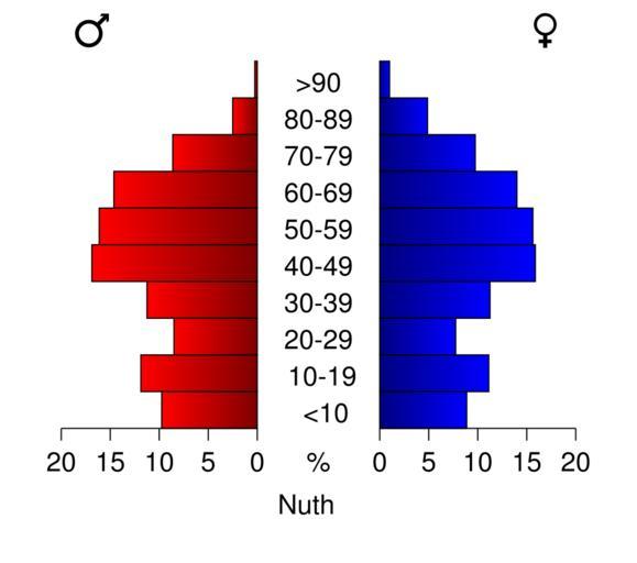 | Keywords: Bevolkingspiramide 2008 - CBS gemeentecode 0951.svg Age pyramids for the municipalities in the Netherlands 1/1/2008 Created in svg with own script Statistics provided by Centraal Bureau voor de Statistiek Voorburg/Heerlen Source Tabel Bevolking; burgerlijke staat geslacht leeftijd en regio 1 januari Tabeltoelichting Gewijzigd op 14 mei 2008 Verschijningsfrequentie per jaar http //statline cbs nl/StatWeb/publication/default aspx DM SLNL PA 03759NED D1 1-2 2c15 D2 118-128 D3 1-4 2c8-9 2c13-19 2c21 2c24 2c26 2c28-30 2c33-36 2c38-40 2c43-44 2c48-49 2c52 2c54 2c56 2c59 2c62 2c64 2c67-71 2c78 2c80-84 2c86-89 2c91 2c93-98 2c101 2c103-107 2c109 2c111-112 2c115 2c118-119 2c121-124 2c126-127 2c130 2c132-134 2c136 2c138-141 2c143-144 2c146 2c151 2c154 2c156-157 2c159-160 2c162-163 2c166-167 2c169 2c171 2c177-179 2c181-182 2c184 2c187-189 2c191-195 2c198 2c201 2c204-205 2c207 2c209 2c211 2c214 2c218-219 2c221-224 2c226 2c228-230 2c233 2c236 2c241-243 2c246-251 2c253 2c257-262 2c265 2c271-274 2c276 2c278 2c282 2c284 2c286-290 2c292 2c294 2c296 2c298-299 2c301-303 2c306 2c312-314 2c317-318 2c321-322 2c327 2c329 2c332 2c334-335 2c337 2c339 2c344-346 2c349-353 2c355-358 2c361 2c363-366 2c368 2c370-373 2c380 2c382-383 2c386-391 2c393-395 2c399 2c403-406 2c408-409 2c412 2c416-417 2c419 2c421-422 2c424 2c426-430 2c432-433 2c439-441 2c447-448 2c450-452 2c455-456 2c458-459 2c462-463 2c465 2c468-469 2c471 2c476 2c478-479 2c481-482 2c484-486 2c489 2c491-492 2c496 2c498-500 2c503 2c505-507 2c512-516 2c519-521 2c523-524 2c528-532 2c534 2c536 2c540 2c542-543 2c546-550 2c552-555 2c560-561 2c564-565 2c567-568 2c572-573 2c577-580 2c586 2c588-594 2c597 2c599-603 2c605 2c609-610 2c612-614 2c617 2c619 2c621-624 2c628 2c630-631 2c633 2c636-637 2c640 2c646-647 2c649-651 2c653 2c655-661 2c663-664 2c666 2c668-670 2c673 2c675-681 2c683-684 2c686 2c689-690 2c693 2c695-696 2c698 2c701-702 2c706-710 2c717 2c719 2c721-722 2c724-725 2c727 2c732-733 2c735-742 2c746 2c750-752 2c756-757 2c759 2c761 2c763-764 2c766-769 2c771-772 2c774-775 2c777 2c779 2c783 2c785-788 2c791-793 2c796-797 D4 l HDR T STB G1 2cG2 2cG3 VW D StatLine own work using CBS data 2009-01 Michiel1972 Own work all rights released Public domain Population pyramids of municipalities of the Netherlands 2008 |