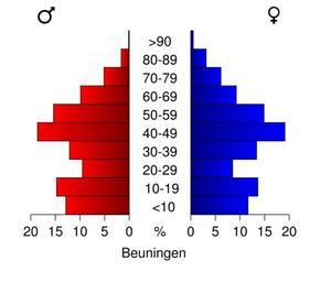 | Keywords: Bevolkingspiramide 2008 - CBS gemeentecode 0209.svg Age pyramids for the municipalities in the Netherlands 1/1/2008 Created in svg with own script Statistics provided by Centraal Bureau voor de Statistiek Voorburg/Heerlen Source Tabel Bevolking; burgerlijke staat geslacht leeftijd en regio 1 januari Tabeltoelichting Gewijzigd op 14 mei 2008 Verschijningsfrequentie per jaar http //statline cbs nl/StatWeb/publication/default aspx DM SLNL PA 03759NED D1 1-2 2c15 D2 118-128 D3 1-4 2c8-9 2c13-19 2c21 2c24 2c26 2c28-30 2c33-36 2c38-40 2c43-44 2c48-49 2c52 2c54 2c56 2c59 2c62 2c64 2c67-71 2c78 2c80-84 2c86-89 2c91 2c93-98 2c101 2c103-107 2c109 2c111-112 2c115 2c118-119 2c121-124 2c126-127 2c130 2c132-134 2c136 2c138-141 2c143-144 2c146 2c151 2c154 2c156-157 2c159-160 2c162-163 2c166-167 2c169 2c171 2c177-179 2c181-182 2c184 2c187-189 2c191-195 2c198 2c201 2c204-205 2c207 2c209 2c211 2c214 2c218-219 2c221-224 2c226 2c228-230 2c233 2c236 2c241-243 2c246-251 2c253 2c257-262 2c265 2c271-274 2c276 2c278 2c282 2c284 2c286-290 2c292 2c294 2c296 2c298-299 2c301-303 2c306 2c312-314 2c317-318 2c321-322 2c327 2c329 2c332 2c334-335 2c337 2c339 2c344-346 2c349-353 2c355-358 2c361 2c363-366 2c368 2c370-373 2c380 2c382-383 2c386-391 2c393-395 2c399 2c403-406 2c408-409 2c412 2c416-417 2c419 2c421-422 2c424 2c426-430 2c432-433 2c439-441 2c447-448 2c450-452 2c455-456 2c458-459 2c462-463 2c465 2c468-469 2c471 2c476 2c478-479 2c481-482 2c484-486 2c489 2c491-492 2c496 2c498-500 2c503 2c505-507 2c512-516 2c519-521 2c523-524 2c528-532 2c534 2c536 2c540 2c542-543 2c546-550 2c552-555 2c560-561 2c564-565 2c567-568 2c572-573 2c577-580 2c586 2c588-594 2c597 2c599-603 2c605 2c609-610 2c612-614 2c617 2c619 2c621-624 2c628 2c630-631 2c633 2c636-637 2c640 2c646-647 2c649-651 2c653 2c655-661 2c663-664 2c666 2c668-670 2c673 2c675-681 2c683-684 2c686 2c689-690 2c693 2c695-696 2c698 2c701-702 2c706-710 2c717 2c719 2c721-722 2c724-725 2c727 2c732-733 2c735-742 2c746 2c750-752 2c756-757 2c759 2c761 2c763-764 2c766-769 2c771-772 2c774-775 2c777 2c779 2c783 2c785-788 2c791-793 2c796-797 D4 l HDR T STB G1 2cG2 2cG3 VW D StatLine own work using CBS data 2009-01 Michiel1972 Own work all rights released Public domain Population pyramids of municipalities of the Netherlands 2008 |