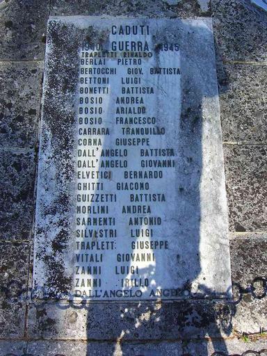 | Keywords: BG 260 Endine monumento ai caduti.jpg it Endine Gaiano in provincia di Bergamo Monumento ai Caduti di tutte le guerre - elenco dei Caduti nella II Guerra Mondiale 1941-1945 own Albertomos 2009-07-16 nessuna ImageNote 1 204 52 405 925 864 1152 2 <center> CADUTI </center> 1940 GUERRA 1945 TRAPLETTI RINALDO BERLAI PIETRO BERTOCCHI GIOV BATTISTA BETTONI LUIGI BONETTI BATTISTA BOSIO ANDREA BOSIO ARIALDO BOSIO FRANCESCO CARRARA TRANQUILLO CORNA GIUSEPPE DALL ™ANGELO BATTISTA DALL ™ANGELO GIOVANNI ELVETICI BERNARDO GHITTI GIACOMO GUIZZETTI BATTISTA MORLINI ANDREA SARMENTI ANTONIO SILVESTRI LUIGI TRAPLETTI GIUSEPPE VITALI GIOVANNI ZANNI LUIGI ZANNI CIRILLO DALL ™ANGELO ANGELO ImageNoteEnd 1 Plaques in Endine Gaiano Monumento ai caduti Endine Gaiano |