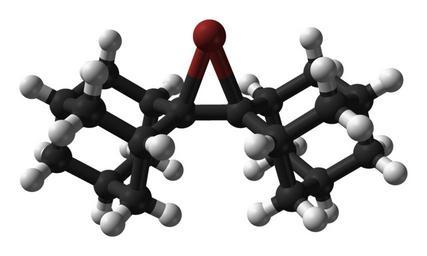 | Keywords: Biadamantylidene-bromonium-ion-from-xtal-1994-3D-balls.png Ball-and-stick model of the bromonium cation derived from the alkene biadamantylidene adamantylideneadamantanebromonium C<sub>20</sub>H<sub>28</sub>Br<sup>+</sup> From the crystal structure of bis adamantylideneadamantanebromonium hydroxonium tris trifluoromethanesulfonate dichloromethane solvate C<sub>20</sub>H<sub>28</sub>Br<sup>+</sup> <sub>2</sub> H<sub>3</sub>O<sup>+</sup> F<sub>3</sub>CSO<sub>3</sub><sup> ˆ’</sup> <sub>3</sub> CH<sub>2</sub>Cl<sub>2</sub> C<sub>44</sub>H<sub>61</sub>Br<sub>2</sub>Cl<sub>2</sub>F<sub>9</sub>O<sub>10</sub>S<sub>3</sub> Crystal structure by X-ray diffraction from http //dx doi org/10 1021/ja00085a027 J Am Chem Soc 1994 116 2448 “2456 Model constructed in http //www crystalmaker com/ CrystalMaker 8 1 Image generated in http //accelrys com/products/discovery-studio/visualization/discovery-studio-visualizer html Accelrys DS Visualizer Own 2009-06-03 Ben Mills Benjah-bmm27 Images by Ben Mills Ball-and-stick models Bromonium ions |