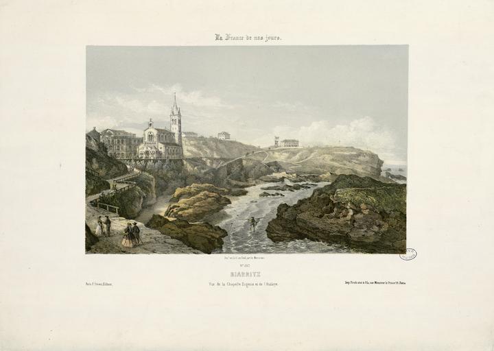 Keywords: Biarritz - Vue de la Chapelle Eugénie et de l'Atalaye - Fonds Ancely - B315556101 A MERCEREAU 7 084.jpg Impression en 3 coul par Frick frères à Paris Fait partie d'un ensemble de recueils de lithographies de Mercereau composés de lithographies provenant de La France de nos jours vaste suite publiée par livraisons de 1853 à 1876 et comprenant 475 planches en deux tirages l'un à deux teintes noir et bistre l'autre en couleurs Les libraires ont réuni ces planches en albums de composition variable quant au nombre de planches et aux dessinateurs Asselineau Mercereau Maurice Deroy etc Un titre Les Pyrénées par Ch Mercereau; Bagnères-de-Luchon par Ch Mercereau était frappé sur le plat supérieur de la reliure de l'album ainsi que le nom du Libraire pour lequel il était réalisé La plupart des recueils de ces planches pyrénéennes portent le nom de Sajous libraire à Bagnères-de-Luchon Pl 1 à 18 numérotées de 370 à 386 Pl 374 pl 5 et 6 en double -- Pl 19 20 et 21 numérotées respectivement 407 415 et 418 Ces trois pl ont été dessinées et lithographiées par Asselineau -- Pl 22 23 et 24 numérotées 438 439 et 440 -- Pl 22 lith par Aubrun -- Pl 25 numérotée 441 -- Pl 26 à 40 numérotées de 327 à 341 -- Pl 41 à 46 numérotées de 363 à 368 -- Pl 47 numérotée 369 -- Pl 48 num 292 -- Pl 49 et 50 num 264 et 265 -- Pl 51 et 52 num 268 et 269 -- Pl 53 à 55 num de 293 à 295 -- Pl 56 num 300 -- Pl 57 à 59 num de 307 à 309 -- Pl 60 à 70 num de 316 à 326 -- Pl 71 num 63 dessin et lith d'Asselineau imprimerie Destouches -- Pl 72 et 73 num 87 et 88 dessin et lith d'Asselineau imprimerie Destouches -- Pl 74 num 124 signée Lebreton éditée chez Lalonde à Paris et imprimée chez Becquet frères à Paris -- Pl 75 num 161 dessin et litho d'Asselineau imprimerie Destouches --Pl 76 à 78 num de 207 à 209 -- Pl 79 à 81 num de 211 à 213 -- Pl 82 num 220 dessin et lith de Maurice imprimerie Destouches -- Pl 83 à 86 num de 226 à 229 -- Pl 87 et 88 num 234 et 235 -- Pl 89 à 91 num de 273 à 275 -- Pl 92 et 93 num 290 et 291 Pièces jointes 6 pl sépia dont certaines sont des doubles du recueil de Mercereau Les cinq premières planches sont numérotées respectivement 318 321 324 331 386 La dernière planche n'est pas extraite de La France de nos jours mais de L'Espagne pittoresque et monumentale Ces six planches sont signées Mercereau éditées chez Sinnet et imprimées chez Frick frères Ancely René 1876 - 1966 Possesseur fre public domain domaine public B315556101_A_MERCEREAU_7_084 jpg image/jpeg 1 f de pl lithogr ; 31 5 cm oblong Sinnet F Éditeur Frick frères Imprimeur http //numerique bibliotheque toulouse fr/collect/general/index/assoc//ark /74899/B315556101_A_MERCEREAU_7_084 dir/B315556101_A_MERCEREAU_7_084 jpg Bibliothèque municipale de Toulouse A-MERCEREAU 7-84 Creator Charles Mercereau http //catalogues toulouse fr/web2/tramp2 exe/do_keyword_search/log_in setting_key BMT1 servers 1home query p001708 St Jean-de-Luz intérieur de l'Eglise St Jean-de-Luz le Château de l'Infante Biarritz Vue générale prise du Phare Château de Mauvesin près Bagnères-de-Bigorre Hautes Pyrénées Bagnères de Bigorre Hautes Pyrénées - Intérieur de l'Eglise des Carmes en couleurs Bagnères de Bigorre Hautes Pyrénées - Intérieur de l'Eglise des Carmes Bagnères-de-Bigorre - Eglise et couvent des Carmes Bagnères-de-Bigorre Hautes-Pyrénées - Tour des Jacobins Cascade et Pont de Magenta Vallée de l'Esponne Hautes Pyrénées Cascade de Trémes-Aïgues Vallée de Grip Hautes Pyrénées St Sauveur Hautes Pyrénées - Le Pont Napoléon Bayonne - Eglise St André Arreau et la Vallée d'Aure Hautes Pyrénées - Vue prise au dessus de la route du Col d'Aspin Auch - Vue prise sur les bords du Gers Auch - Vue de la Cathédrale Auch - Intérieur de la Cathédrale Bagnères-de-Bigorre - Vue Générale prise de la Fontaine ferrugineuse Eaux-Bonnes Basses-Pyrénées - L'établissement Thermal et la Chapelle Nantes - Vue de l'Eglise Ste Croix Le Croisic - Plage des Baigneurs et Etablissement de Bains Le Folgoët - Vue de l'Eglise Brèche de Roland prise de Gèdres Hautes Pyrénées Eglise des Templiers à Luz Chapelle du couvent de Pouëlahun i e Pouey Lahun - Vallée d'Azun Hautes Pyrénées Le Pont de Scia - Route de Luz à Gavarnie Hautes-Pyrénées Vue de l'établissement de la Raillière près Cauterets Hautes-Pyrénées Vue générale de Cauterets prise du Mamelon Vert Hautes-Pyrénées Vue du Fort de Lourdes Hautes-Pyrénées Vue d'Argelès-de-Bigorre Hautes-Pyrénées Vue de St Sauveur Hautes-Pyrénées Le Pas de l'Echelle Route de Gavarnie Hautes-Pyrénées Fond de la Vallée d'Argelès prise de la terrasse de St Savin Hautes-Pyrénées Place Grammont à Pau Basses-Pyrénées Vue générale des Eaux-Bonnes Basses-Pyrénées Barèges et la Vallée du Bastan Hautes-Pyrénées Chute supérieure du Pont d'Espagne Hautes-Pyrénées La grotte miraculeuse à Lourdes Hautes-Pyrénées Eglise de Bétharram et Pont de Lestelle Basses Pyrénées Cascade du Cerizet Près Cauterets Hautes-Pyrénées Pic du Midi d'Ossau 2885m Basses Pyrénées - Vue prise du 3e plateau de Bious-Artigues Toulouse - Cloître du Musée et Clocher des Augustins Pau - Vue prise de la terrasse du Château Pau - Vue du Château prise du Parc Toulouse - Cloître du Musée Galerie du Moyen-Age Toulouse - La maison de pierre fragment de la façade Toulouse - Intérieur de St Sernin St Jean-de-Luz Fort du Socoa Toulouse - Vue du Capitole Bordeaux Vue de la Porte du Caillau i e Cailhau Bordeaux Porte de la grosse Cloche Bordeaux Vue des Quinconces Bordeaux - Vue de la Tour et de l'Eglise de St Michel Toulouse - Vue du Pont de pierre prise du Quai de Brienne Toulouse - Abside de l'Eglise de St Sernin de l'an 1097 Toulouse - Choeur de la Cathédrale St Etienne Rouen - Hôtel de Bourgtheroulde Biarritz - Vue des Bains Napoléon et du Casino Biarritz - Vue des Bains du Port Vieux Biarritz - Vue de l'Entrée de l
