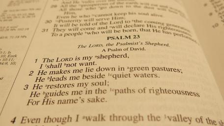 Keywords: bible scripture psalm psalm 23 christian religion holy book book spiritual faith text god old testament open page