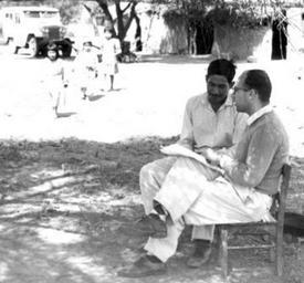 | Keywords: mennonite board of missions mennoniteboardofmissions mennonite mission network mennonitemissionnetwork argentina mission service voluntary service voluntaryservice elmer miller elmermiller bible toba missionary chaco blackandwhite monochrome outdoor black and white Caption: 1964. Tobas are eager to learn to read the Spanish Bible. Here Mennonite missionary Elmer Miller gives a Toba direction in Bible Study. Citation: Mennonite Board of Missions. Photographs. Argentina, 1942-1963. IV-10-7.2 Box 1 folders 37, photo #2. Mennonite Church USA Archives - Goshen. Goshen, Indiana Caption: 1964. Tobas are eager to learn to read the Spanish Bible. Here Mennonite missionary Elmer Miller gives a Toba direction in Bible Study. Citation: Mennonite Board of Missions. Photographs. Argentina, 1942-1963. IV-10-7.2 Box 1 folders 37, photo #2. Mennonite Church USA Archives - Goshen. Goshen, Indiana |