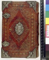 | Keywords: Biblia ... Deutsch, D. Martini Lutheri, mit ausgehenden Versiculn, kurtzen Summarien ... &c - Lower cover (c27f13).jpg Style Pointille comprising dots ; Caption Lower cover; Colour Red; Edge Gilt and gauffered exhibition history Decorative Technique Tooled in gold; Cover Material Goatskin includes morocco turkey etc Gold tooled with silver corner pieces and silver centrepieces with on the upper cover the letters SDM and on the lower cover the date Ao 1695 2 pairs fo clasps object history Text 1683; Luneburg; Unspecified object type Cc-zero place of creation Binding Germany place of discovery Unspecified British Library image http //www bl uk/catalogues/bookbindings/LargeImage aspx RecordId 020-000008430 ImageId ImageId 43820 Copyright BL Biblia Deutsch D Martini Lutheri mit ausgehenden Versiculn kurtzen Summarien c Uploaded with GWToolset Biblia Deutsch D Martini Lutheri mit ausgehenden Versiculn kurtzen Summarien c - Lower cover c27f13 http //www webarchive org uk/bldatasets/bindings/9050_4 jpg Bookbinding 17th-century bookbinding British Library Bookbindings |