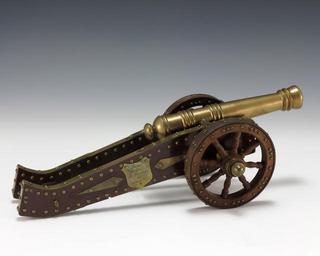 | Keywords: Bicentennial Toy Cannon.jpg en Handcrafted miniature cannon made out of brass with a wooden frame ornamented with brass studs Engraved plaques on either side of the frame are translated to To Mr President Gerald R Ford A souvenir on the occasion of the 200th anniversary of the American Revolution / Poland / J Radwanski / 1976 wood 5 H x 11 W x 4 75 D Institution Gerald R Ford Presidential Museum http //www fordlibrarymuseum gov/museum/ArtifactCollectionSamples/Catagories/Bicentennial/Cannon html Model Cannon accession number 2004 570 credit line Courtesy of the Gerald R Ford Presidential Museum Donation Date September 2 1976 Institution Institution Gerald R Ford Presidential Museum Gerald R Ford Presidential Library and Museum-cooperation PD-USGov Uploaded with UploadWizard United States Bicentennial materials in the Gerald R Ford Presidential Museum United States Bicentennial Toy cannons Models of guns |
