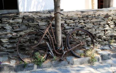 Keywords: bicycle abandoned radios rusty handlebar impaired chuck wheel cycling oxide broken street