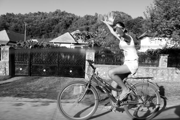 Keywords: bicycle bikes country girls riding roads young b amp w people sports recreation