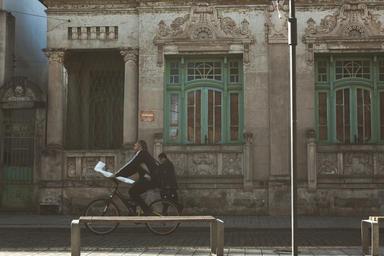 Keywords: bicycle grunge bike urban old dark facade house street road cycling italy mediterranean biking man worker briefcase cobblestone building windows architecture stone bench post