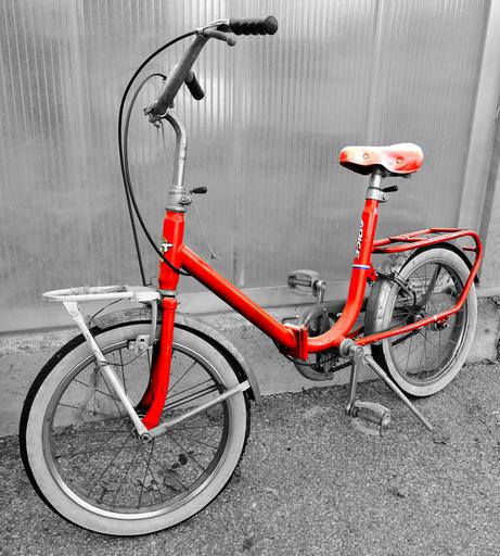 Keywords: bicycle old red vintage wheels saddle handlebars pedals