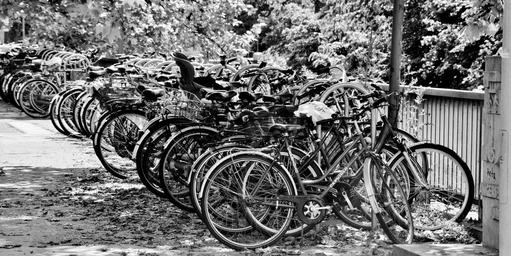 Keywords: bicycles wheels bike racks bike cycling cycle black and white