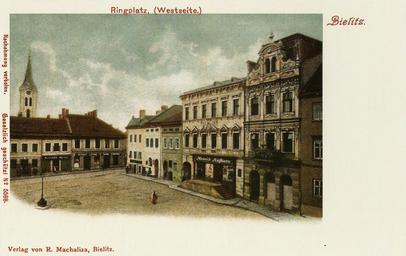 | Keywords: Bielsko-Biała Rynek 001.JPG Rynek w Bielsku-Białej południowo-zachodni narożnik Rynku Bielsko-Biała Südwestecke des Platzes Scan aus dem Buch Monika Ćwikowska-Broda und Wiesław Ćwikowski Bielsko-Biała i okolice - historia pocztówka pisana / Bielitz-Biala und Umgebung - Geschichte mit Ansichtskarten geschrieben / Bielsko-Biała and Surroundings - The History Depicted by Postcards Oficyna Wydawicza M-C Bielsko-Biała ISBN 978-83-926877-0-2 Verlag R Machaliza ~ 1901 PD-old Market Square in Bielsko-Biała Old Postcards of Bielsko 1901 postcards |