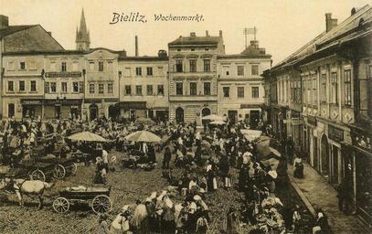 | Keywords: Bielsko-Biała Rynek 004.JPG Rynek w Bielsku-Białej Bielsko-Biała Nordostecke des Platzes Scan aus dem Buch Monika Ćwikowska-Broda und Wiesław Ćwikowski Bielsko-Biała i okolice - historia pocztówka pisana / Bielitz-Biala und Umgebung - Geschichte mit Ansichtskarten geschrieben / Bielsko-Biała and Surroundings - The History Depicted by Postcards Oficyna Wydawicza M-C Bielsko-Biała ISBN 978-83-926877-0-2 Bernh Loinger Biala 1911 PD-old Market Square in Bielsko-Biała Old Postcards of Bielsko 1911 postcards |