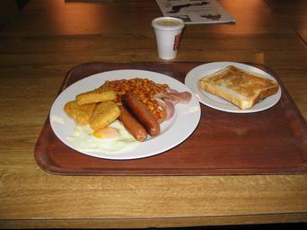 Keywords: Big Breakfast - Cardiff University.JPG Typical British Big Breakfast Own Melliug Breakfast in the United Kingdom Sausages of Wales Cardiff University Food with drink