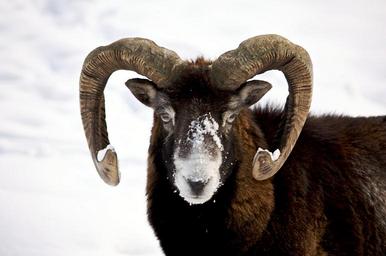 Keywords: big horn sheep ram male wildlife nature horns snow head looking portrait standing outdoors mammal wild wilderness winter
