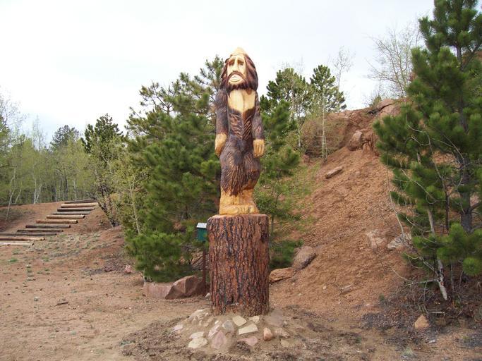 Keywords: Bigfoot09 006.jpg en Big Foot carving located 5 4 miles up highway at Crystal Visitor Center parking lot on Pikes Peak America's Mountain Cascade Colorado own Park Ranger Pikes Peak America's Mountain User Pinecone87 2009-06-07 Big Foot was carved in 2009 by William Larson owner of Tree People in Woodland Park Colorado El Paso County Colorado Wooden statues in the United States Bigfoot |