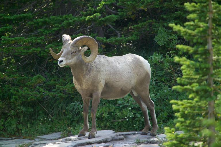 MAKE A MEME View Large Image Bighorn sheep move in groups in Glacier's alpine and east side. Rams grow enormous horns (which differ from antlers in that they do not drop off yearly) that they use to batter each other during the rut every fall in competitions for mates. ...