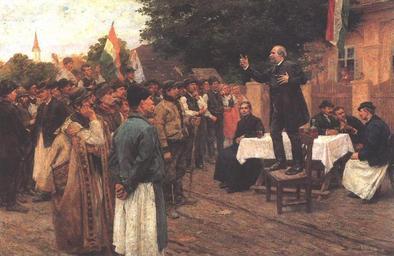 | Keywords: Bihari Programbeszéd.jpg Artwork Creator Sándor Bihari 1891 Oil on canvas Size cm 127 3 75 Institution Hungarian National Gallery object history exhibition history credit line accession number Fine Arts in Hungary http //www hung-art hu/kep/b/bihari/muvek/valaszta jpg http //www hung-art hu/frames-e html /english/b/bihari/muvek/valaszta html PD-old-100 Paintings by Sándor Bihari in the Hungarian National Gallery 1891 paintings in Hungary 19th-century genre paintings | ||||