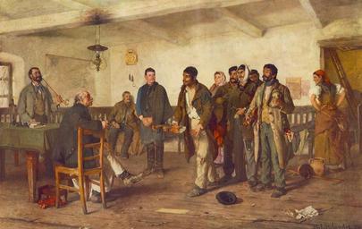 | Keywords: Bihari Sándor Bíró előtt.jpg Bihari Sándor Bíró előtt 1886 - olaj vászon 111 2x167 cm Magyar Nemzeti Galéria http //mek niif hu/04100/04171/html/elemzes htm Forrás-SzSzK http //www hung-art hu/frames html /magyar/b/bihari/muvek/index html hung-art 1886 Creator Sándor Bihari 1886 paintings in Hungary PD-old-100 Sándor Bihari 19th-century oil on canvas paintings in Hungary Roma people in art Roma people in Hungary People with clocks in art Paintings of smokers pipes | ||||
