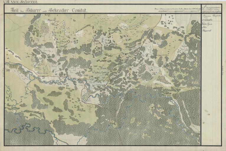 Keywords: BihorSolnocCrasna Josephinische Landesaufnahme pg24-26.jpg wikitable style margin 1em auto 1em auto width 80 Name shown on the map<br>Nume din hartă Administrative unit<br>Unitate administrativă Romanian name<br>Numele românesc Hungarian name<br>Numele unguresc German name<br>Numele german Country today<br>Ţara de astăzi - Kote-Gjan Bihar Kötegyán Magyarország - Illie Bihar Ciumeghiu Illye Csömög Csümeg Illye Csömög Csümeg România - Megerek Bihar Micherechi Méhkerék Magyarország - Kingdom of Hungary 1782-85 Josephinische Landesaufnahme pg 24-26 <br>Counties shown on the map <br>1 Bihar County<br>2 Bekeser County Harta Iosefină a Regatului Ungariei 1782-85 Josephinische Landesaufnahme pg 24-26 <br>Comitate prezentate pe hartă <br>1 Comitatul Bihor<br>2 Comitatul Bichiş Österreichisches Staatsarchiv Kriegsarchiv Historische Militärkarte der österreichisch-ungarischen Monarchie 1782-1785 PD-old-100 Clickable Map of the Bihor Solnoc Crasna County BihorSolnocCrasnaCountyJosephinischeLandesaufnahme1782-85 Josephinische Landaufnahme Old maps of Békés County |