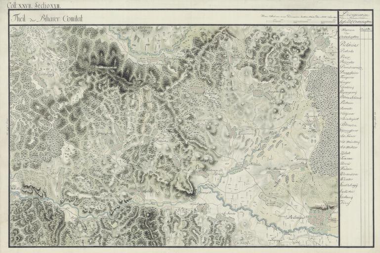 Keywords: BihorSolnocCrasna Josephinische Landesaufnahme pg27-23.jpg wikitable style margin 1em auto 1em auto width 80 Name shown on the map<br>Nume din hartă Administrative unit<br>Unitate administrativă Romanian name<br>Numele românesc Hungarian name<br>Numele unguresc German name<br>Numele german Country today<br>Ţara de astăzi - Belénies Bihar Beiuş Belényes Romania - Pokola Bihar Pocola Biharpoklos Pokola Romania - Borza Bihar Borz Borz Romania - Preszaka Bihar Prisaca Presaca Gyepüpataka Preszáka Romania - Dombravicza Bihar Dumbrăviţa Dumbrăviţa-mică Kisdombró Kisdombravica Kisdombrovica Romania - Dragostian Bihar Drăgoteni Dragoteni Drágota Dragottyán Romania - Fenyeres Bihar Feneriş Fenyéres Feneres Romania - Fenyes Bihar Romania - Gÿalánÿ Bihar Delani Gyalány Tövisfalva Romania - Ropaganÿ Bihar Răbăgani Lazuri Răbăgani Gara Mureşeni Robogány Romania - Petras Solimos Bihar Şoimuş Şoimuş-Petreasa Şoimuş-Petroasa Gyepüsolymos Solymospetrász Petrászsolymos Oláhsolymos Felsősolymos Solymos Romania - Pietran Bihar Petreasa Şoimuş Şoimuş-Petreasa Gyepüsolymos Solymospetrász Petránsolymos Romania - Remete Bihar Remetea Magyarremete Belsőremete Belényesremete Remete Romania - Solÿmos Bihar Şoimuş-Petreasa Gyepüsolymos Romania - Shinkujest Bihar Şuncuiş Şoncoiuş Belényessonkolyos Sonkolyos Romania - Petrasza Bihar Petreasa Romania - Gÿozanforro Bihar Forău Josani-Forău Belényesforró Dzsoszánforró Romania - Szt János Bihar Ioaniş Ivăneşti Körösjánosfalva Jánosfalva Romania - Szt Mártonÿ Bihar Sânmartin de Beiuş Sânmărtin Sânmartinul de Beiuş Belényesszentmárton Szentmárton Romania - Szt Miklos Bihar Sânnicolau de Beiuş Sânmiclăuş Belényesszentmiklós Szentmiklós Romania - Ujlak Bihar Uilacu de Beiuş Uilacul Beiuşului Uileac-de-Beiuş Uilac Belényesújlak Romania - Tsosan Bihar Josani-Gurbeşti Gorbolyfalva Romania - Urvis Bihar Urviş de Beiuş Urviş Urvis Belényesörvényes Középörvényes Alsóörvényes Romania - Valán Bihar Vălanii de Beiuş Petrani-Vălani Belényesvalány Romania - Weresan Bihar Vărăşeni Crişeni-Vărăşeni Veresfalva Varosány Romania - Wenter Bihar Vintere Vintire Vintiri Venter Magyarventer Oláhventer Pusztaventer Kápolnásventer Romania - Szaldobagÿ Bihar Săldăbagiu Mic Săldăbagiu de Beiuş Săldăbagiu Sălişte-Săldăbagiu Körösszáldobágy Szelistyeszáldobágy Romania - Szelistie Bihar Sălişte de Pomezeu Sălişte-Pomezeu Sălişte-Pomezău Sălişte Papmezőszeleste Papmezőszelistye Mezőszeleste Mezőszelistye Romania - Szokanÿ Bihar Săucani Szokány Szőkefalva Romania - Füzes Bihar Fiziş Füzegy Romania - Bihor County 1782-85 Josephinische Landesaufnahme pg 27-23 Harta Iosefină a Comitatului Bihor 1782-85 Josephinische Landesaufnahme pg 27-23 Österreichisches Staatsarchiv Kriegsarchiv Historische Militärkarte der österreichisch-ungarischen Monarchie 1782-1785 PD-old-100 Clickable Map of the Bihor Solnoc Crasna County BihorSolnocCrasnaCountyJosephinischeLandesaufnahme1782-85 Josephinische Landaufnahme |