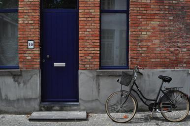 Keywords: bike bicycle cyclist park autumn door house brussels city belgium windows brick building architecture