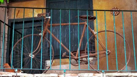 Keywords: bike bicycle two wheels balcony blue yellow