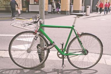 Keywords: bike green wheel city road parking downtown street photography hip hipster retro summer cycling locomotion move urban city life