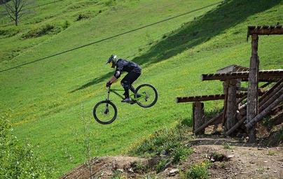 Keywords: bike human person sport bike park obstacle jump action out nature cycling hill bike route terrain trail riding in motion