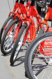 Keywords: bike orange red wheel outdoor transport street parking sport active