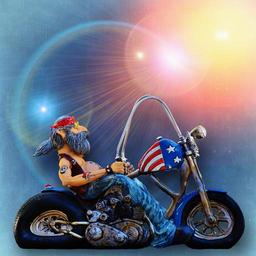 Keywords: biker bike tattooed america cool casual funny man sit joy of life motorcycle two wheeled vehicle fig fun headband jeans